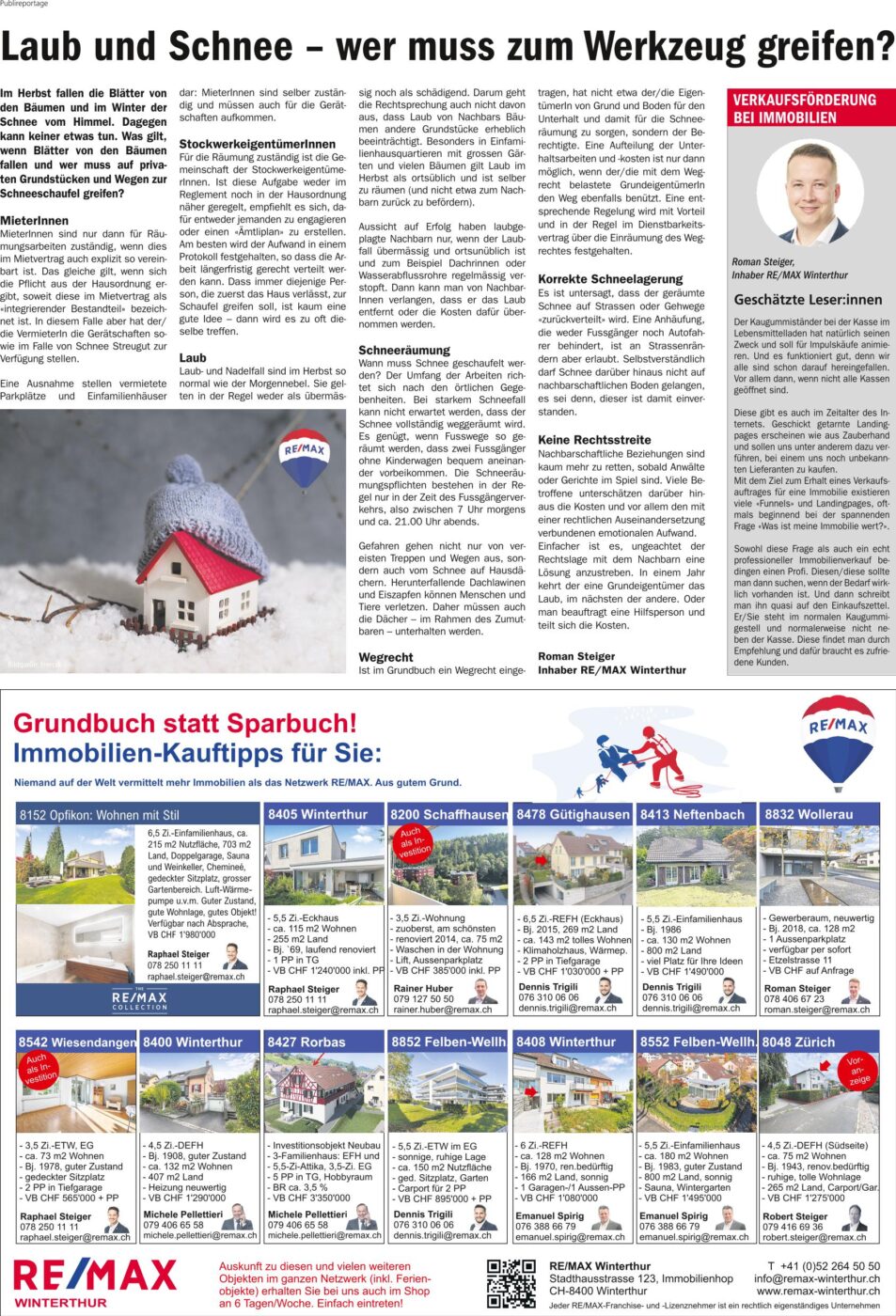 – Schneeräumung: Wann muss Schnee geschaufelt werden? Der Umfang der Arbeiten richtet sich nach den örtlichen Gegebenheiten. Bei starkem Schneefall kann nicht erwartet werden, dass der Schnee vollständig weggeräumt wird. Es genügt, wenn Fusswege so geräumt werden, dass zwei Fussgänger ohne Kinderwagen bequem aneinander vorbeikommen. Die Schneeräumungspflichten bestehen in der Regel nur in der Zeit des Fussgängerverkehrs, also zwischen 7 Uhr morgens und ca. 21.00 Uhr abends.