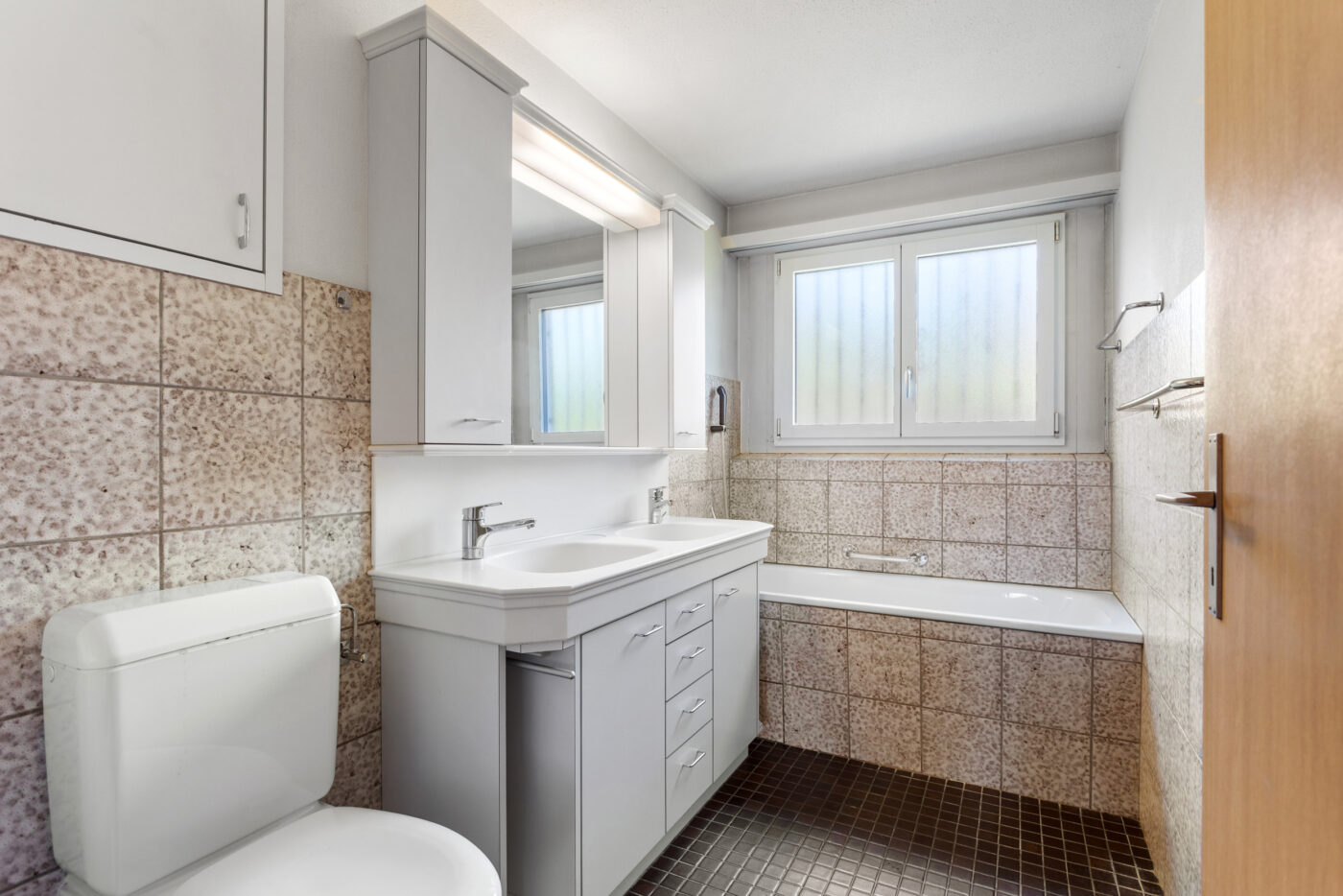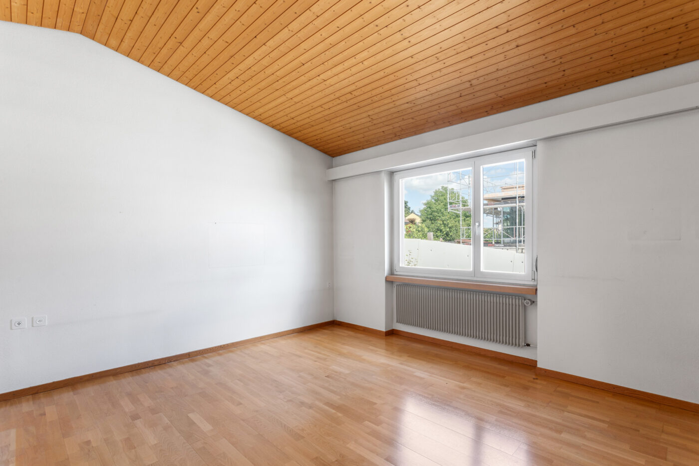 Im oberen Geschoss befinden sich das grosszügige Elternschlafzimmer sowie zwei weitere gut geschnittene Schlafzimmer, die durch zwei praktische Wandschränke voneinander getrennt sind. Eine weitere Staumöglichkeit in der Dachkammer sorgt für zusätzlichen Platz und unterstützt eine aufgeräumte Wohnatmosphäre. Das Badezimmer ergänzt diese Ebene und schafft einen komfortablen, privaten Rückzugsbereich.