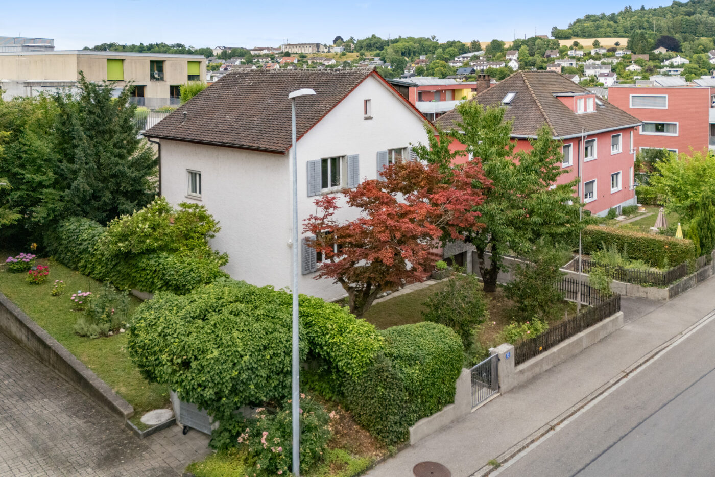 Das Untergeschoss punktet mit einem Naturkeller, einem Hobbyraum, einer Waschküche mit Dusche, einem separaten Tankraum und direktem Zugang zur grossen Garage sowie einem überdachten Ausgang zum Garten. Der gepflegte Aussenbereich umfasst einen umzäunten Garten, einen Vorgarten mit Bäumen und Sträuchern, einen Kiesplatz mit Wäschehänge und ein gemauertes Schöpfli (ca. 10 m²). Ein Aussenparkplatz ergänzt das Platzangebot. Für Komfort sorgen Kabel-TV, eine Ölheizung sowie Anschlussmöglichkeiten für Erdgas und Fernwärme – ein rundum stimmiges Zuhause mit viel Platz, Licht und Lebensqualität.