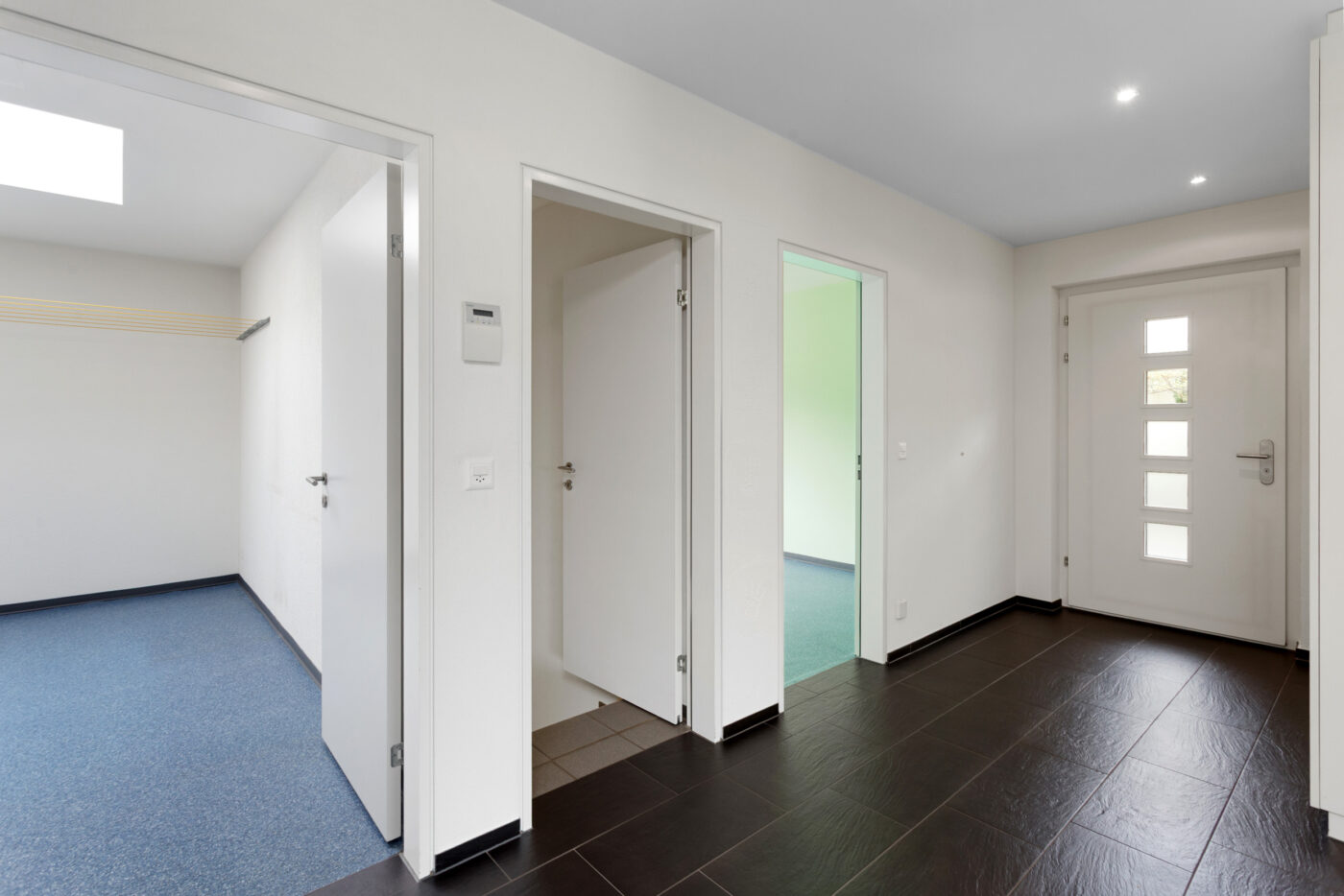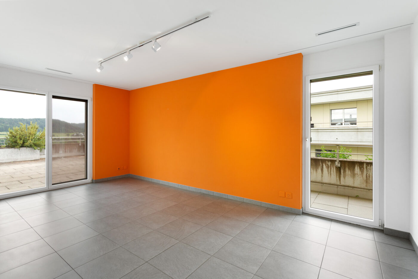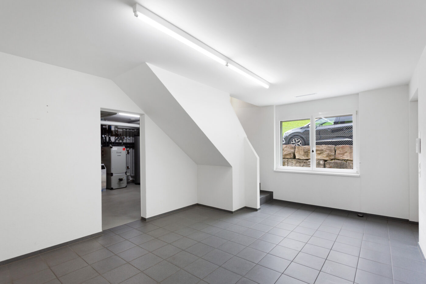 Ein architektonisches Juwel ist die weitläufige, nach Südwesten ausgerichtete Terrasse, welche nahezu von allen Räumen aus direkt zugänglich ist. Sie bietet ganztägig Sonne, vielfältige Gestaltungsmöglichkeiten und bildet eine private Oase mit maximaler Aufenthaltsqualität im Freien. Abgerundet wird das Raumangebot durch eine auf derselben Ebene integrierte, grosszügig ausgebaute Waschküche. Ein zusätzlicher Zugang auf der unteren Etage führt in einen separaten Empfangsbereich mit Technikraum sowie weiteren Abstellflächen – ideal für eine klare Trennung von Wohn- und Funktionszonen.