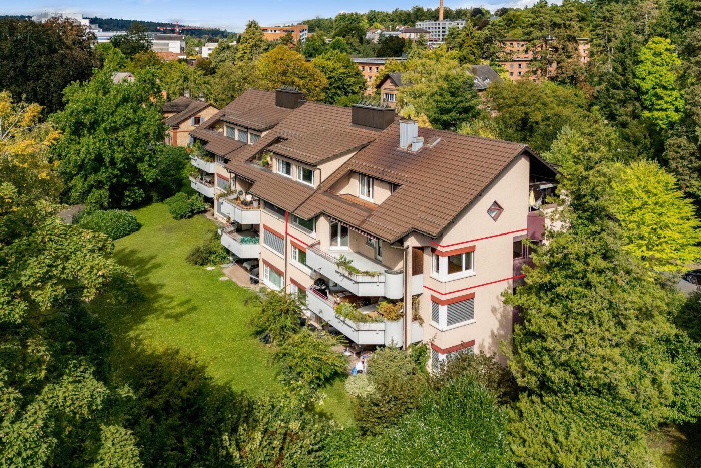 Zur Liegenschaft gehören ein Tiefgaragenplatz, ein eigenes Kellerabteil im Untergeschoss sowie ein Waschraum mit Waschmaschine und Tumbler. Für zusätzlichen Erholungswert sorgt der grosszügige Gemeinschaftsgarten, der von allen Bewohnern genutzt werden kann. Beheizt wird die Liegenschaft über eine Gasheizung mit komfortabler Fussbodenheizung.