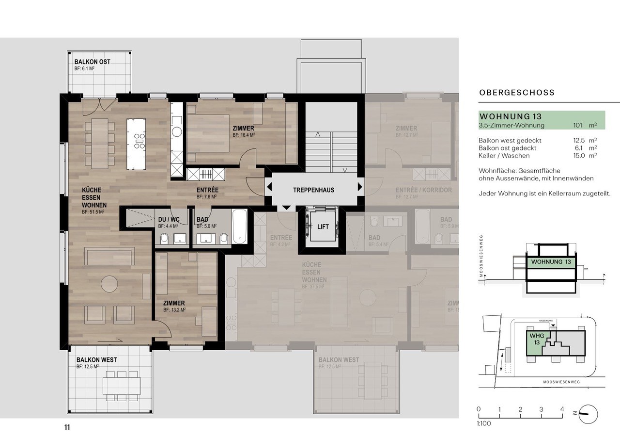 Wohnung 13 – helle 3.5-Zi.-Eigentumswohnung im Obergeschoss mit zwei gedeckten Balkonen